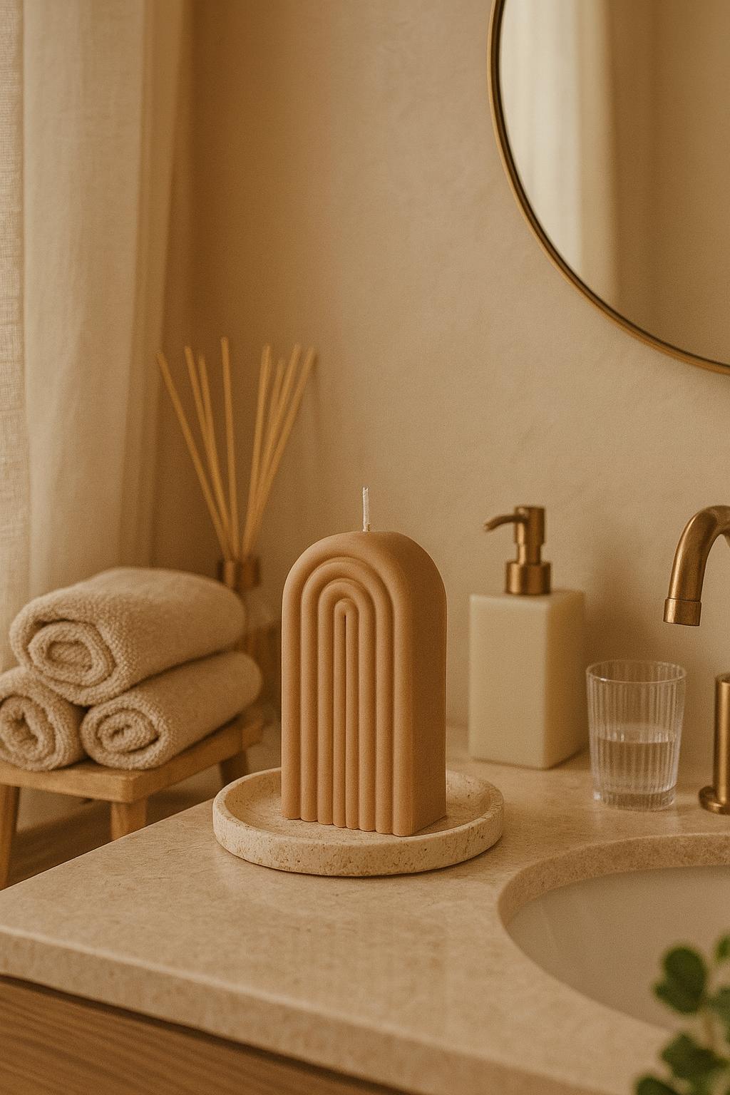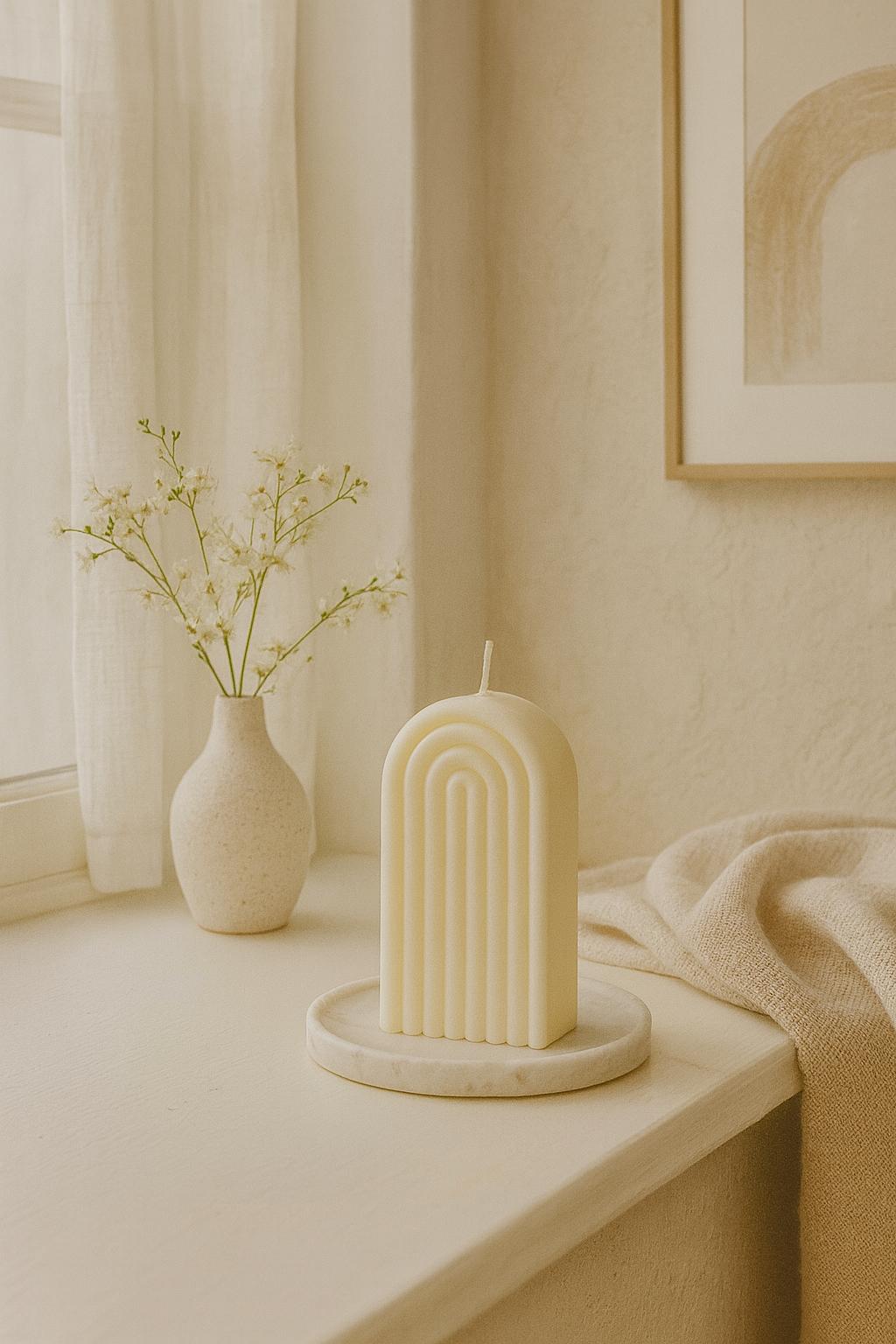 Bringe liebevolle Handarbeit und natürliche Eleganz in dein Zuhause mit der Arcadia Candle Kerze.